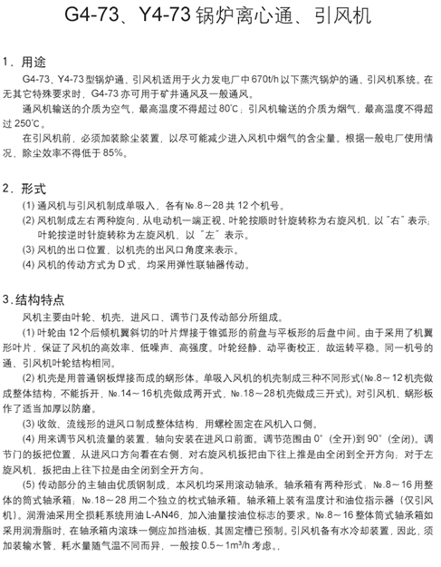 G4-73、Y4-73鍋爐離心通、引風(fēng)機(jī)